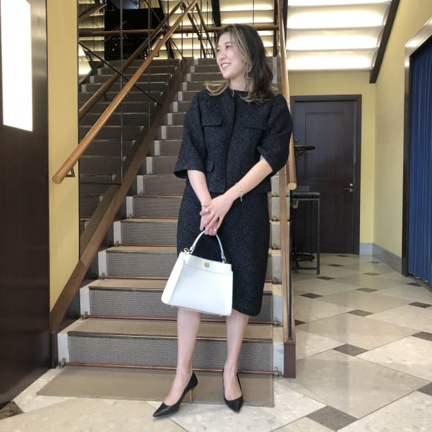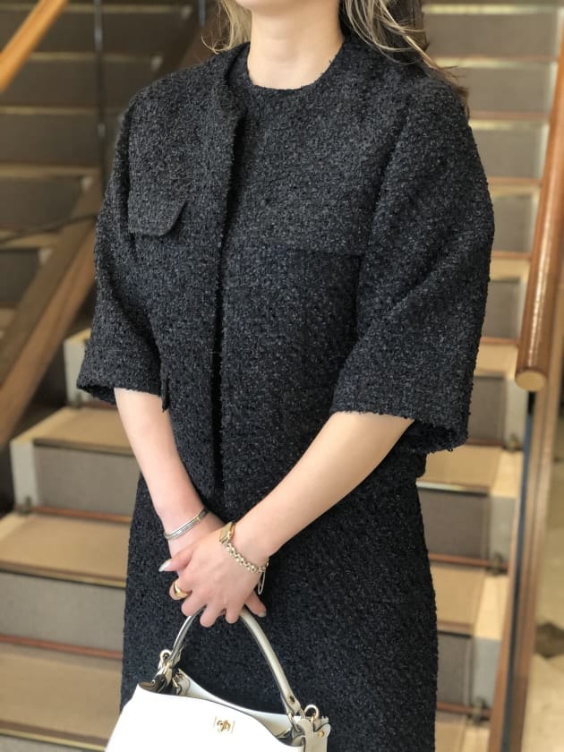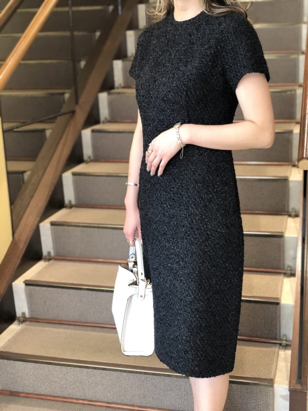 しかしツイード素材なので、暗くなりすぎずに、大人の華やかさを演出できます。