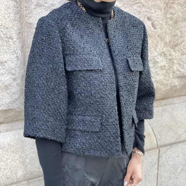 NAVYだと、甘すぎずにツイードを楽しんで頂けますので、クールな雰囲気が好きな方は是非NAVYをチェックしてみてくださいー!