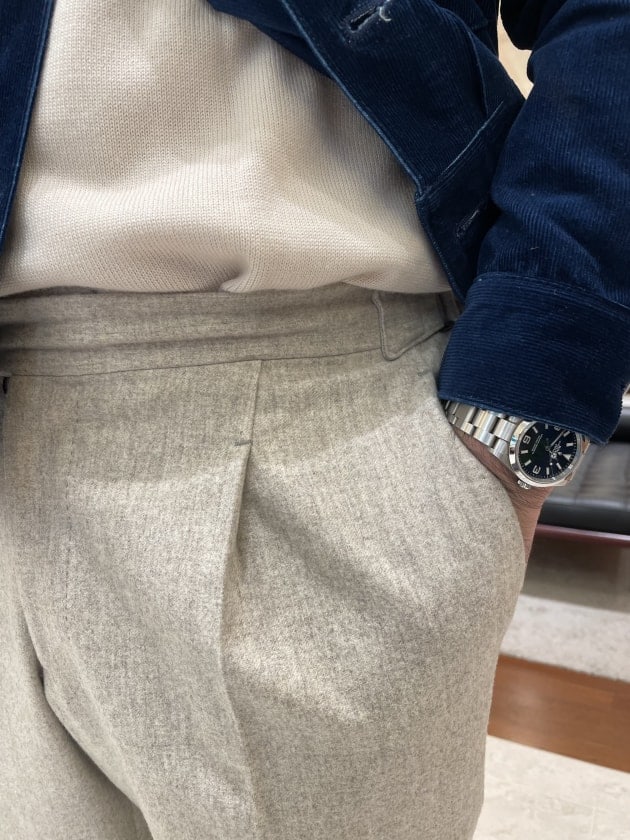 フランスで製作活動をしていたあの天才画家が晩年に着用していたものをイメージソースに作ったとデザイナーの小林さんも話されていました。