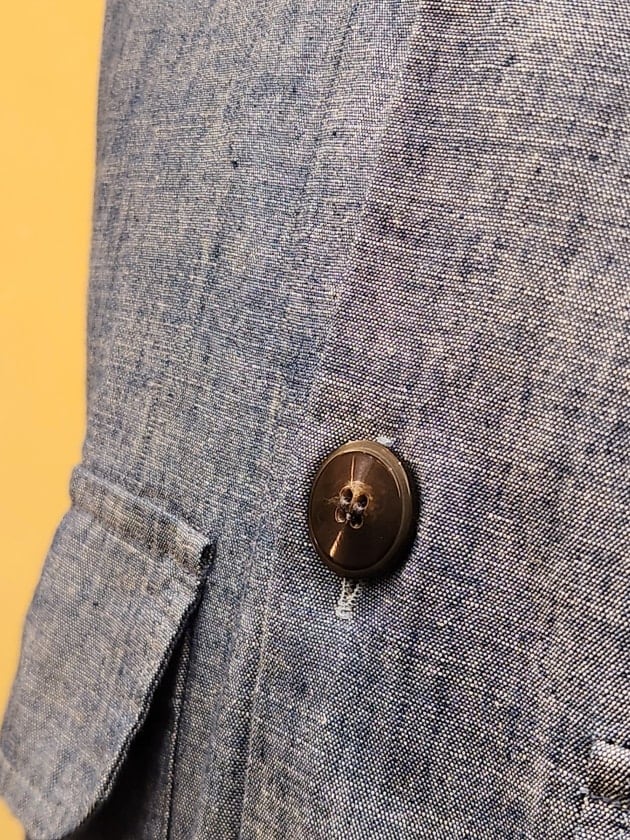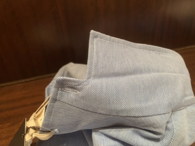 ボタンはイタリアの伝統的ともいえる少し厚みのあるボタン。角がラウンドしております。薄いボタンが好きな方が多い反面、私はこのボタンが1番お気に入り。高級感があるんですよね。