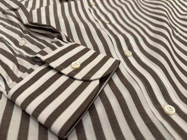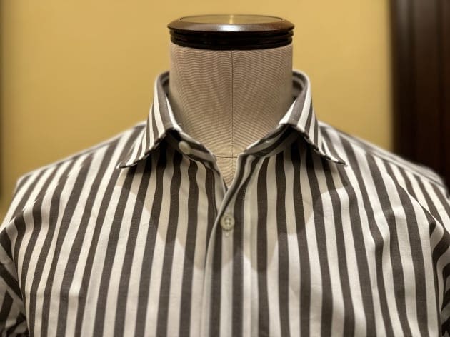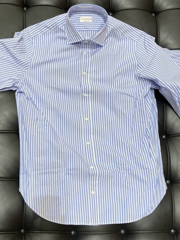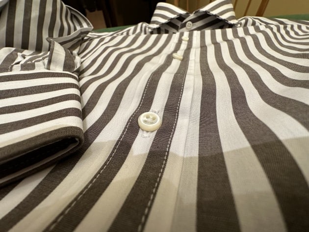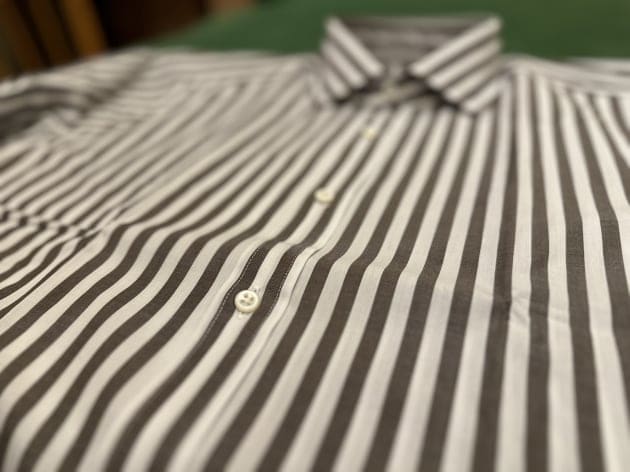 本日もこちらのシャツの魅力をたっぷりご紹介します。ストライプシャツが苦手と言わず、ほんの2,3分お付き合い下さい。