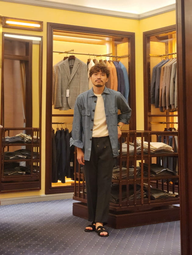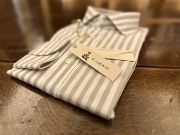ご存知の方も多いブランド<GUY ROVER>。そもそもどういうブランディングなのか?ちょっと深掘りしてお話しすると、南イタリアの手縫いシャツとは違い、フルマシンメイドで作られる北イタリアのピアチェンツァ創業のブランド。