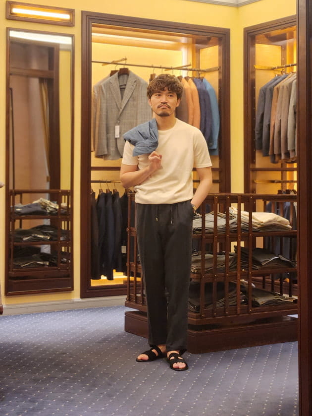 実はこの生地感、私も所有しておりまして非常に調子が良いんです。肌触りはいいのにコシがあるので地肌にとても馴染むんです。自信を持って紹介できます!