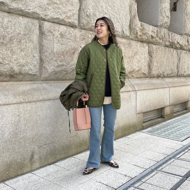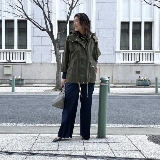 気分の上がるアウターを着用して、