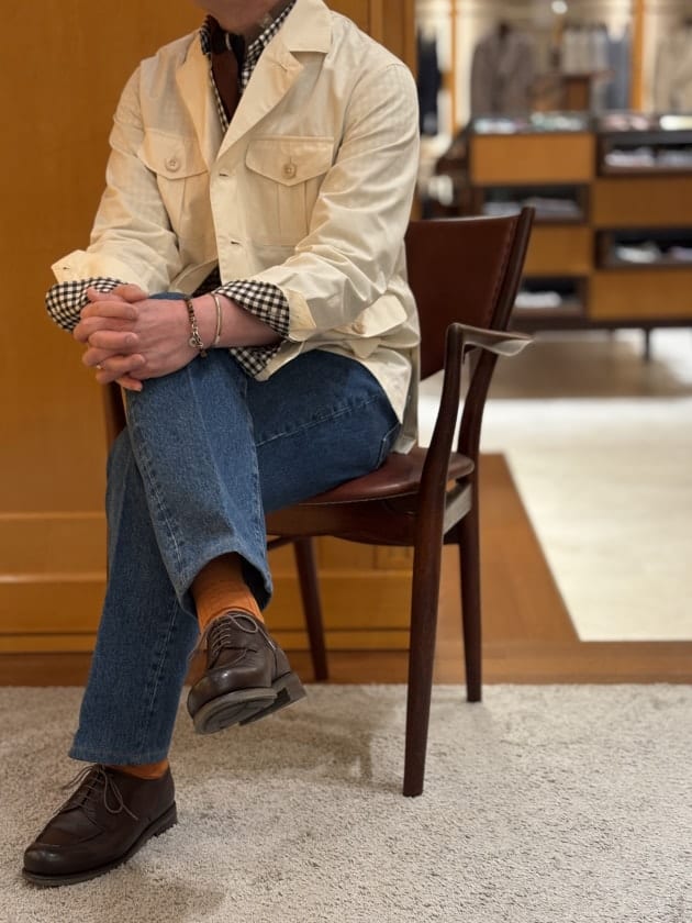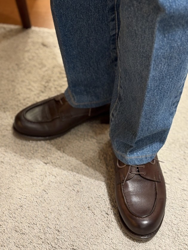 足元はBEAMS F別注の〈Paraboot(パラブーツ)〉のシャンボード。