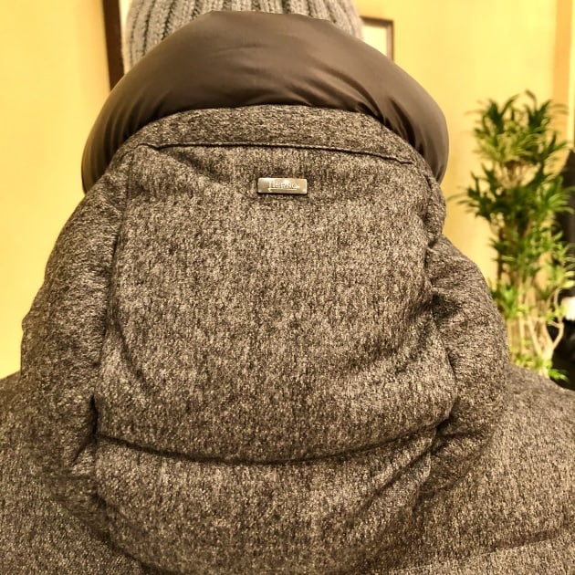 HERNO】PIACENZA社のシルク51%カシミヤ49%素材。糸から撥水加工を施し、環境にも優しいPFC(フッ素化合物)フリーなダウン。ダウン90%フェザー10%のインジェクション(ダウンを直接封入)仕様により圧倒的な軽さ、ダウンプルーフ加工の逸品です。