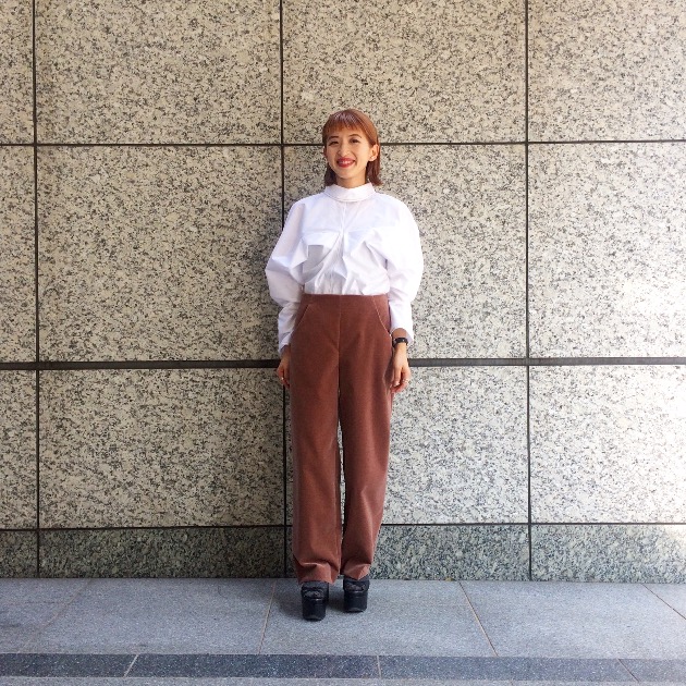 スタッフ横田は<vanessa sward>花柄のトップスのコーディネートを引き締めるワンポイントとして使っております!