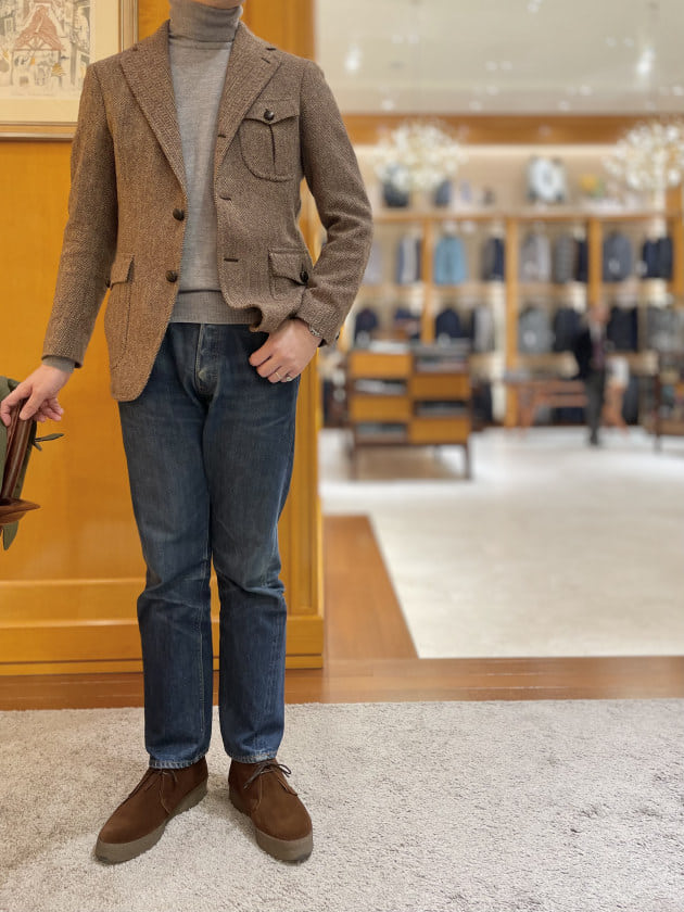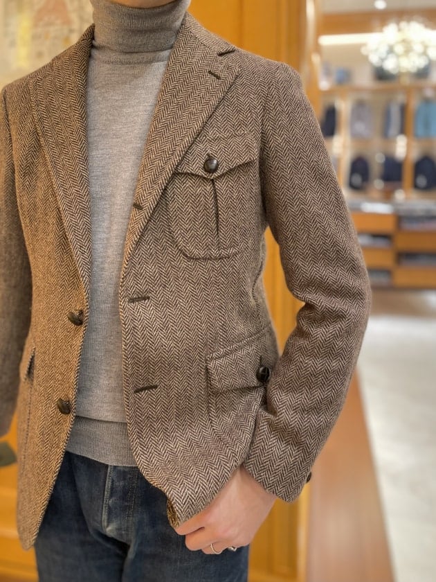 ブラウンヘリンボーンハンティングジャケットは当ブログでもお馴染みの it'sokスペシャルのシリアルナンバー、TITOさんサイン入りの〈TITO ALLEGRETTO(ティト アレグレット)〉。