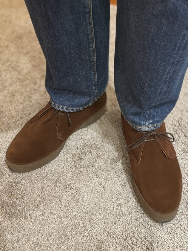 足元は今シーズンご予約でお求めの〈SANDERS(サンダース)〉のスエードチャッカブーツ。