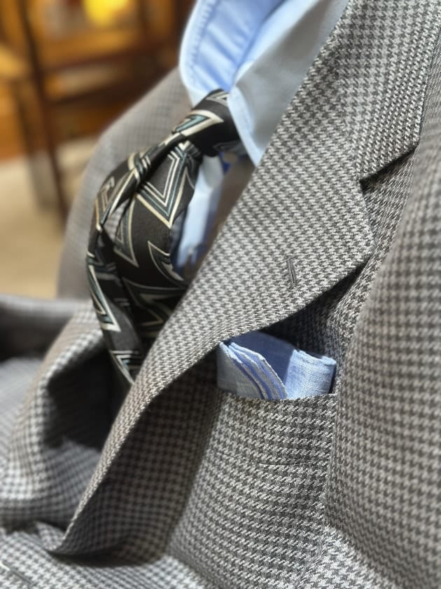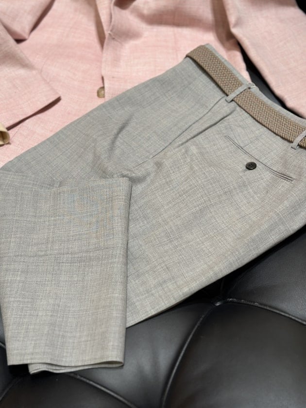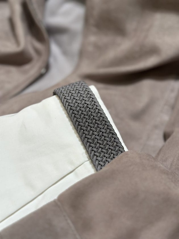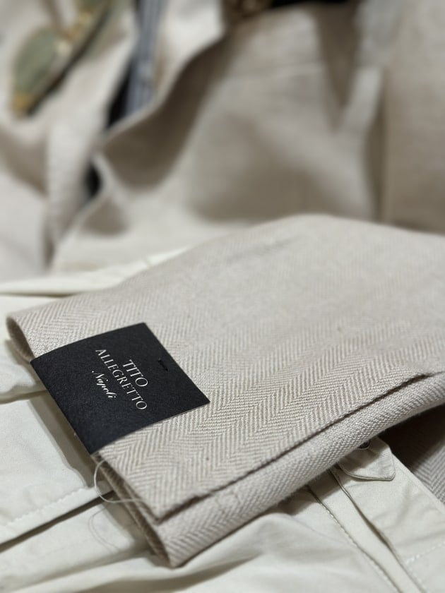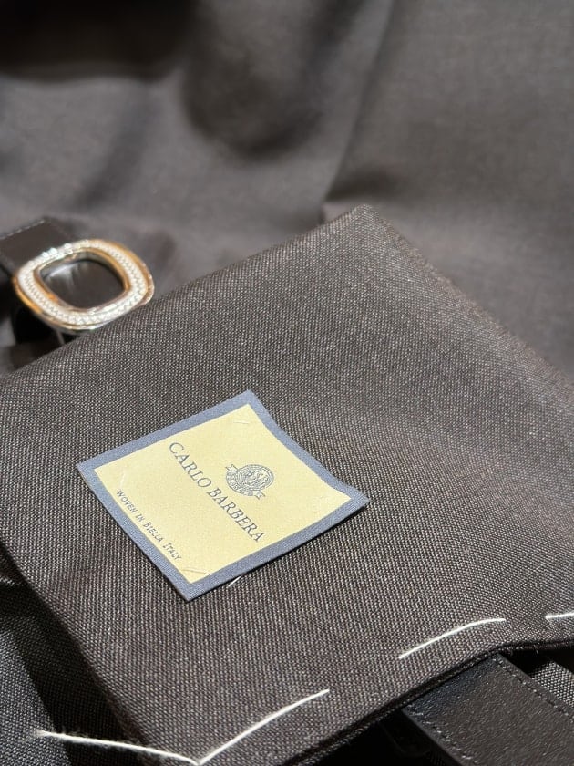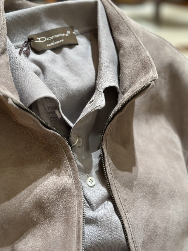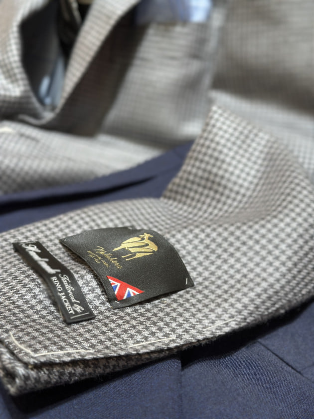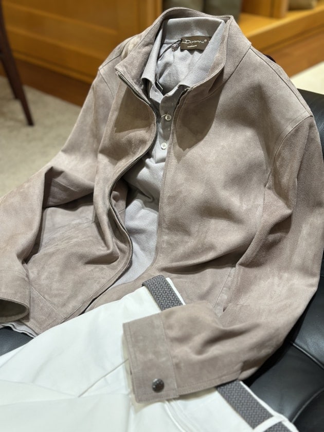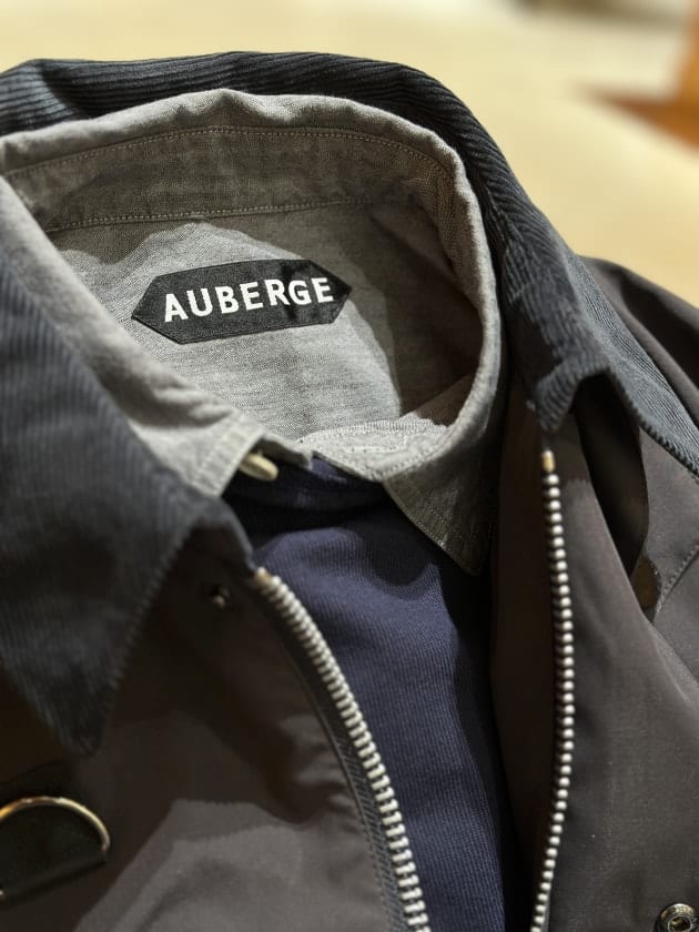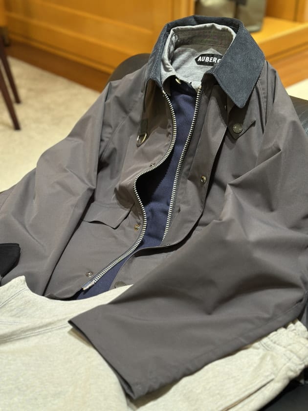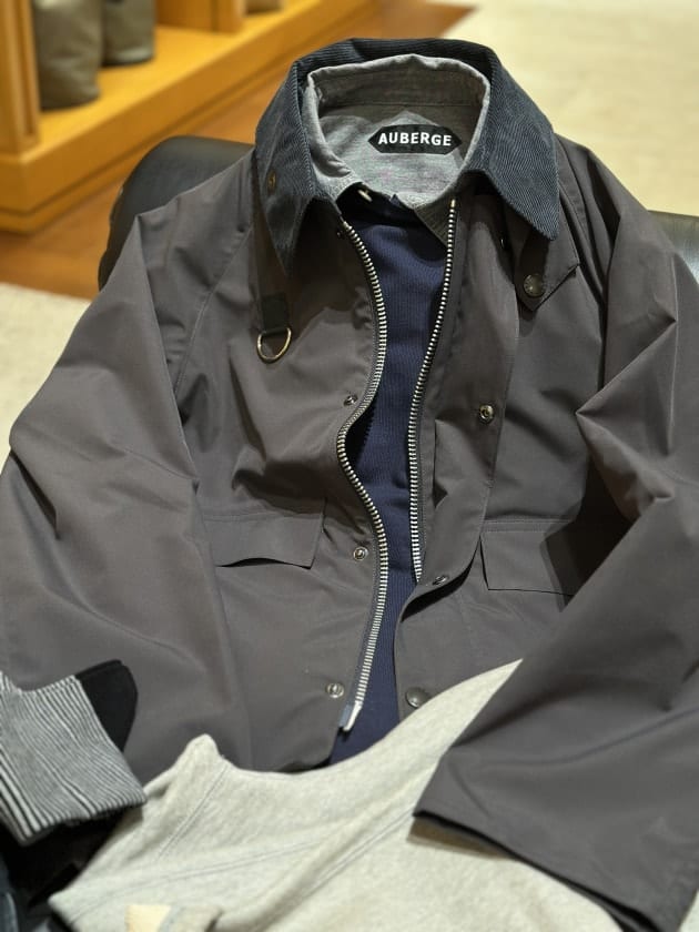 シワになりにくいポリ生地。ライトウェイトな点もオススメですが、何より今年のチャコールグレーの生地と、ブルーグレーのコーデュロイ襟が非常に洒落てます!