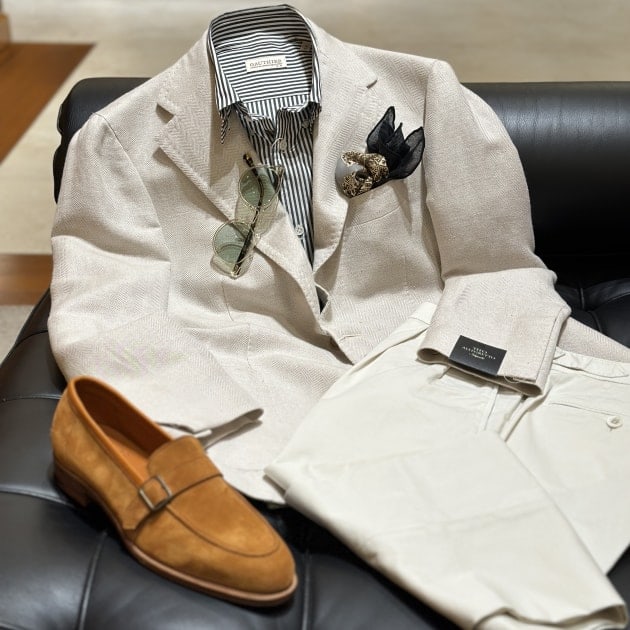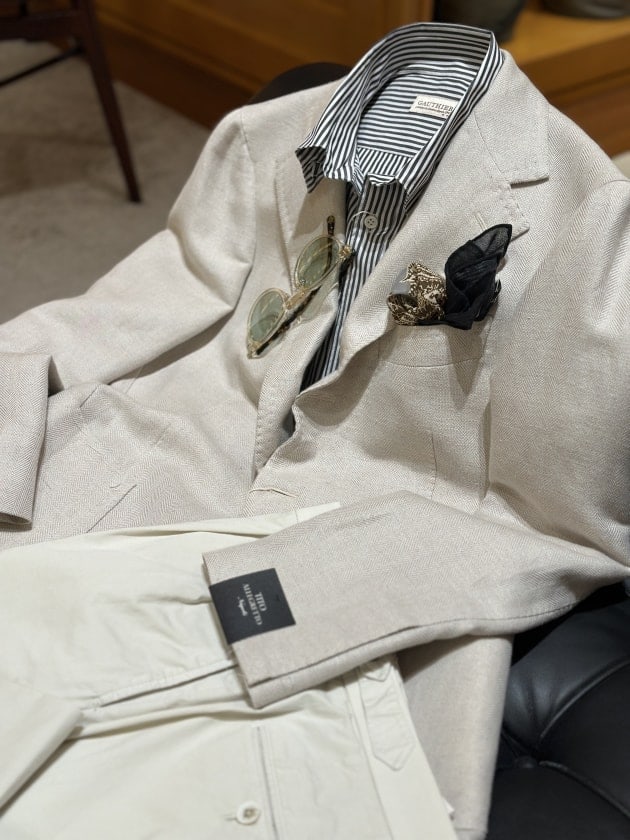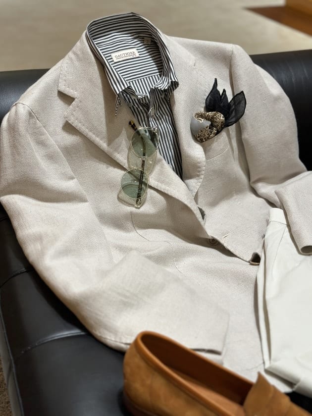 組んだ後に感じたのが、ボーイッシュな女性が着てそうなスタイリングだなと。クラシックな洋服を女性的な感覚で着るとシルエットやレイヤードを上手に着ているのでとても参考にしやすかったりします!