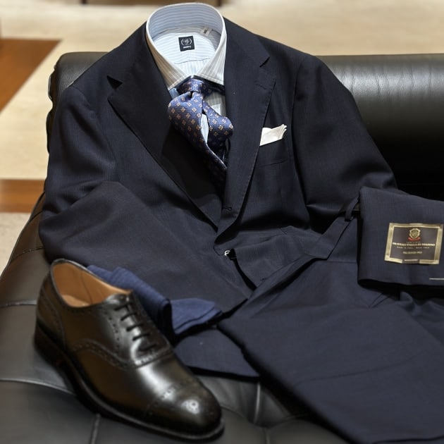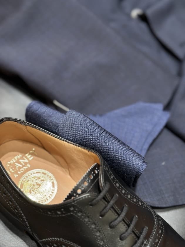 セントジェームスのウエッソン。今年は別注カラーをご用意しました。普通のネイビーなのでは? と思いがちですが、やや使い込んだ後のような良い具合に色が抜けた不朽の1着です。