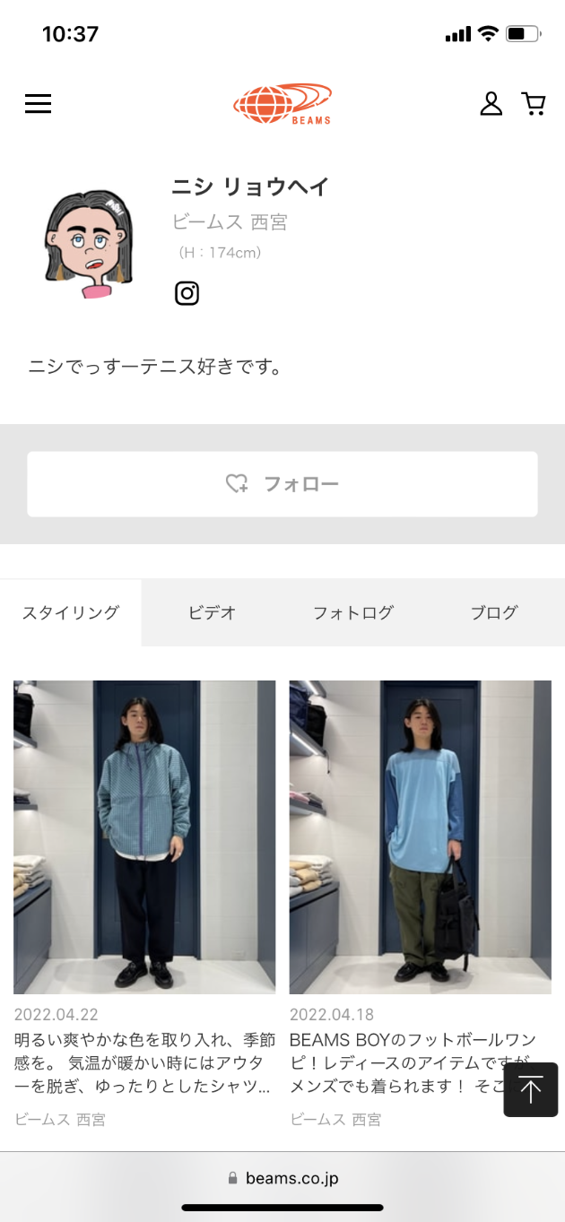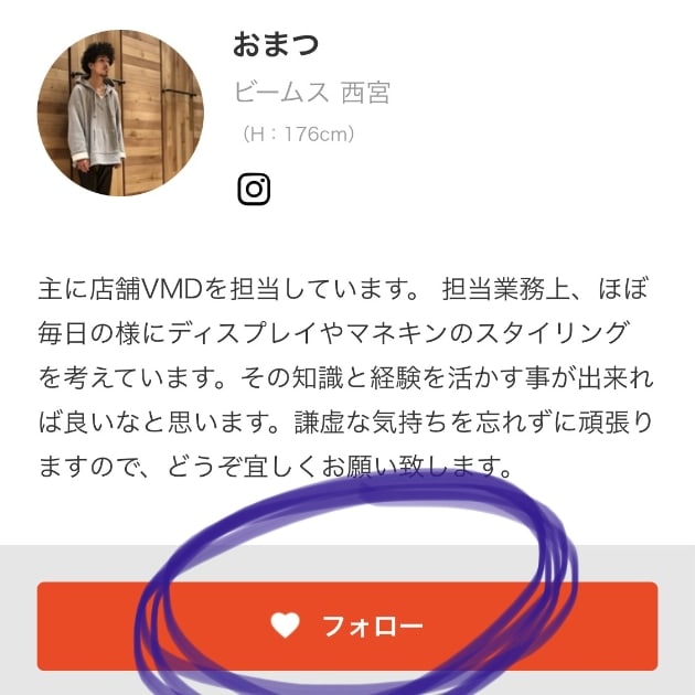 しかしこの見た目で面白さ満載。自然な愛想がクセになる人柄。人に合わせた楽しい接客が得意で、服以外の音楽やアウトドアなどに関して唯一共感を得て楽しく接してくれるくれる子です。