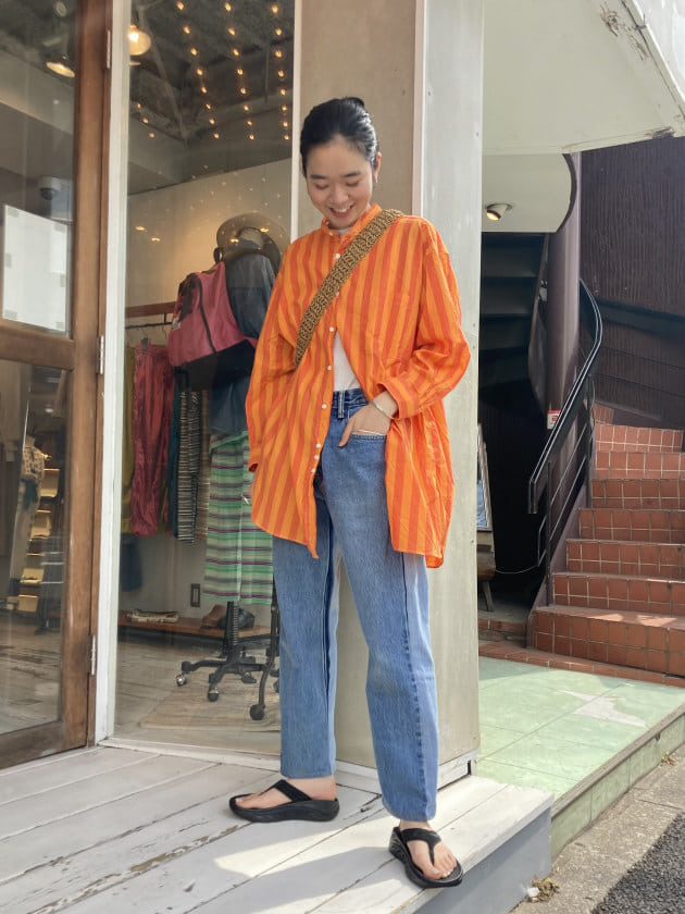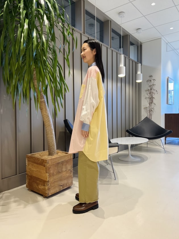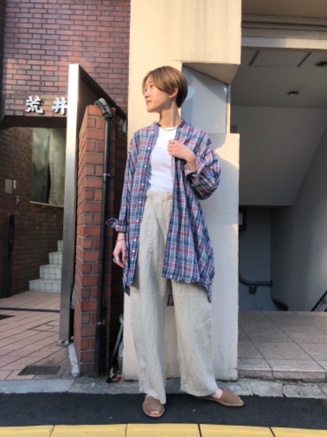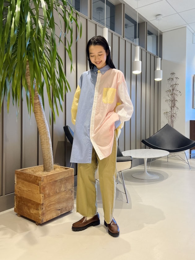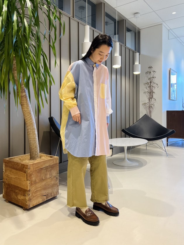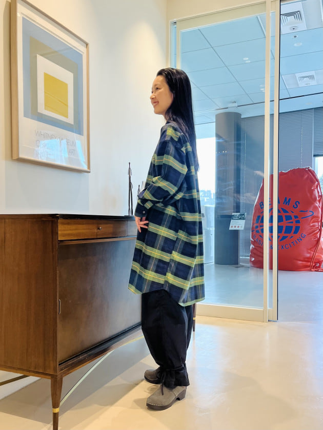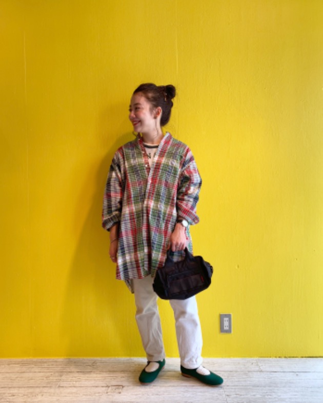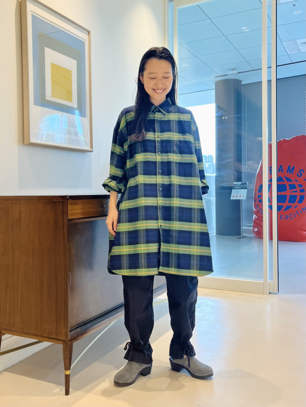 ④<INDIVIDUALIZED SHIRTS>別注に可愛いチェックが登場!ラフにスタイリングしてみました。