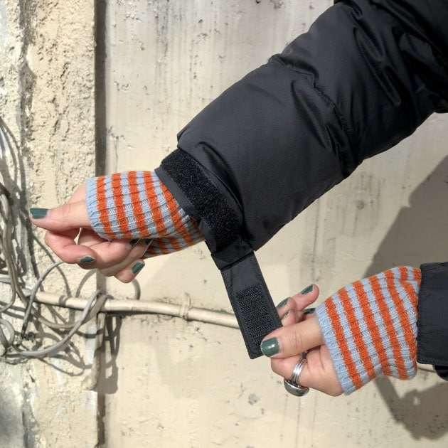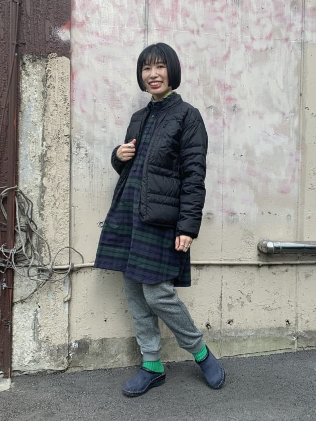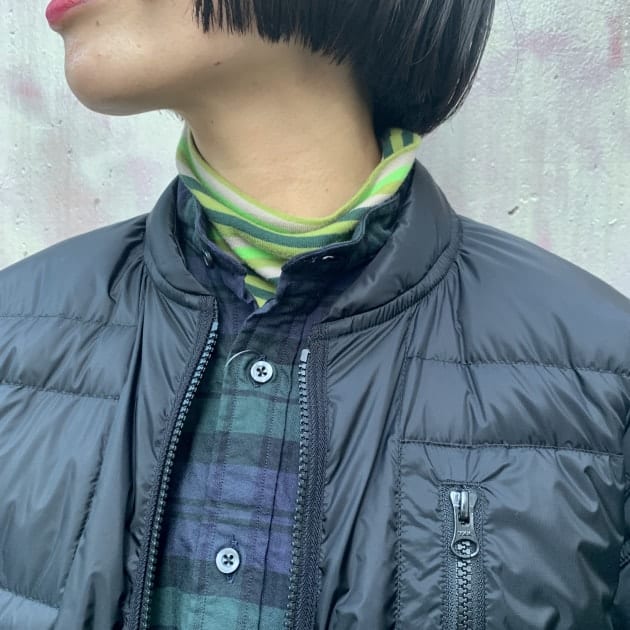 アウターに合わせてグリーンをチョイス。