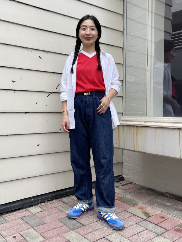 この日着てきていた<adidas>の古着Tに、このシアーラインショートスリーブが間違いなく合うな!と思い、そのままレイヤード♡