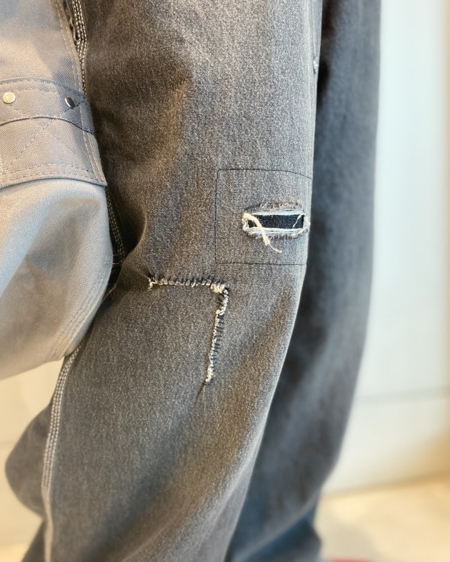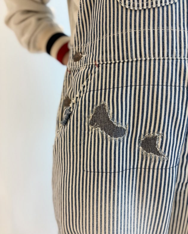 デニムのフェード感とステッチのリペアの組み合わせが可愛いですよね〜