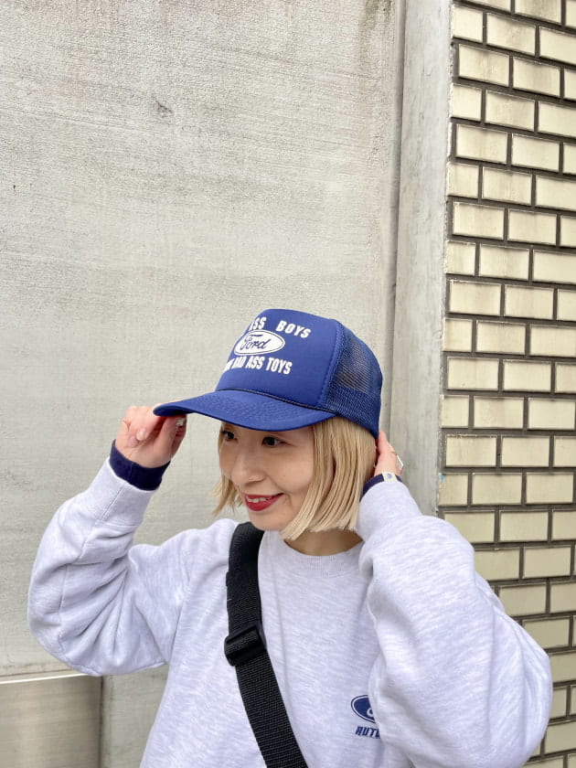 ポイントは同じく"Ford"の私物のメッシュキャップ!