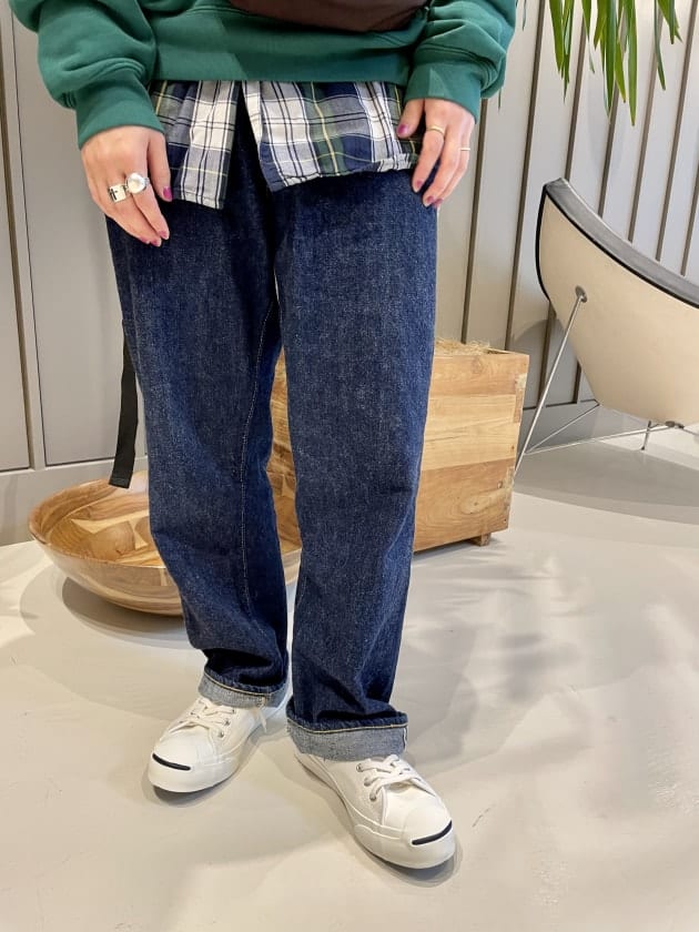 ④<INDIVIDUALIZED SHIRTS>別注に可愛いチェックが登場!ラフにスタイリングしてみました。
