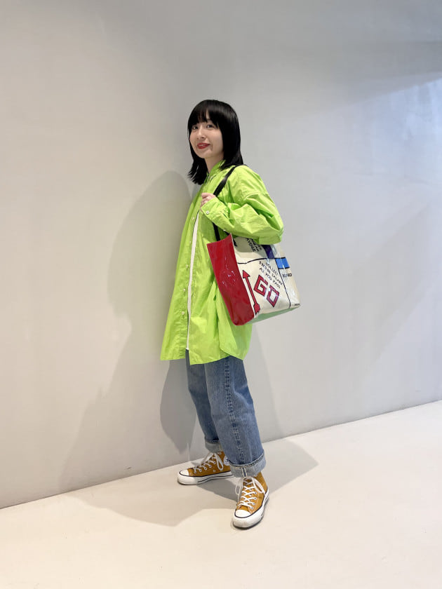 アウターに合わせてグリーンをチョイス。