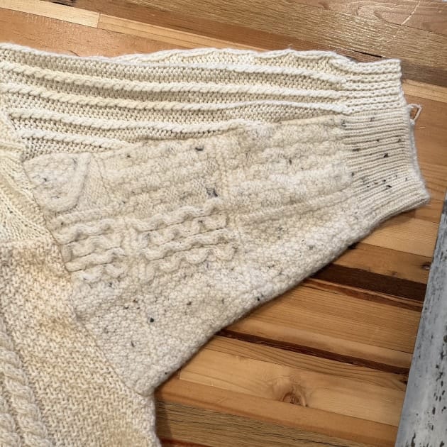 4枚のジャケットを繋ぎ合わせたこちら。〈SUNNY SIDE UP〉らしい贅沢なリメイクアイテムとなっております。
