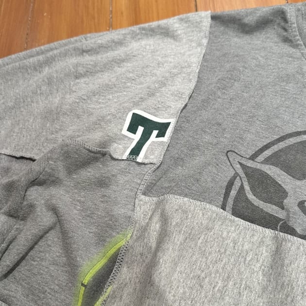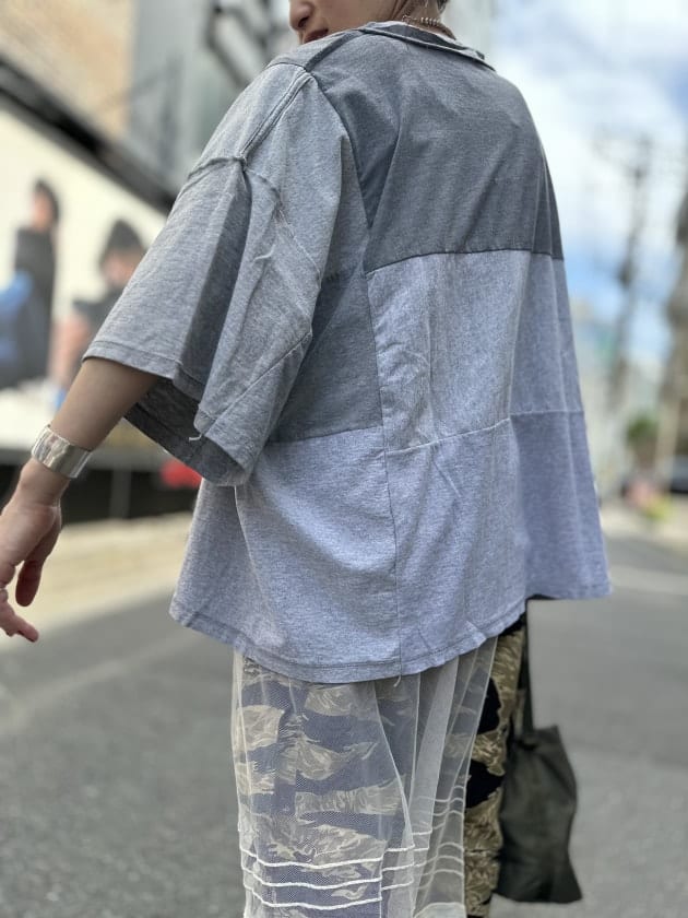 バックスタイルのが印象的なファティーグシャツ。なんと、ピースマークを意識した切り替えになっているそうです。