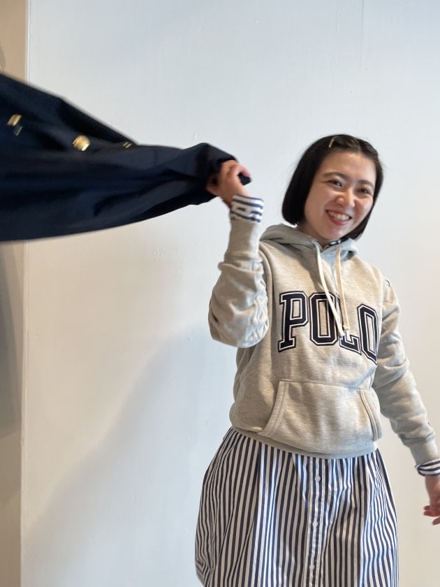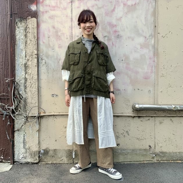シャツワンピースと重ねてもまだ身幅は少しゆとりアリ♡