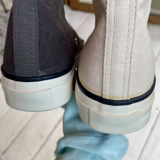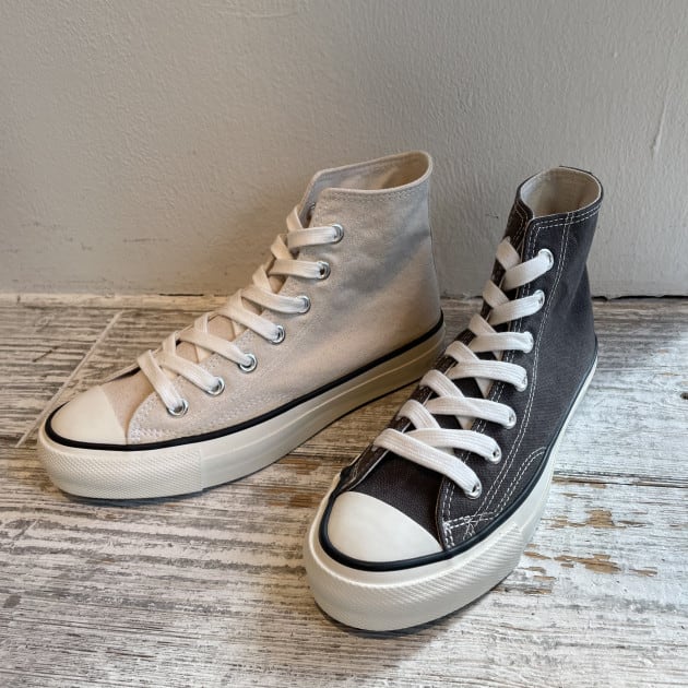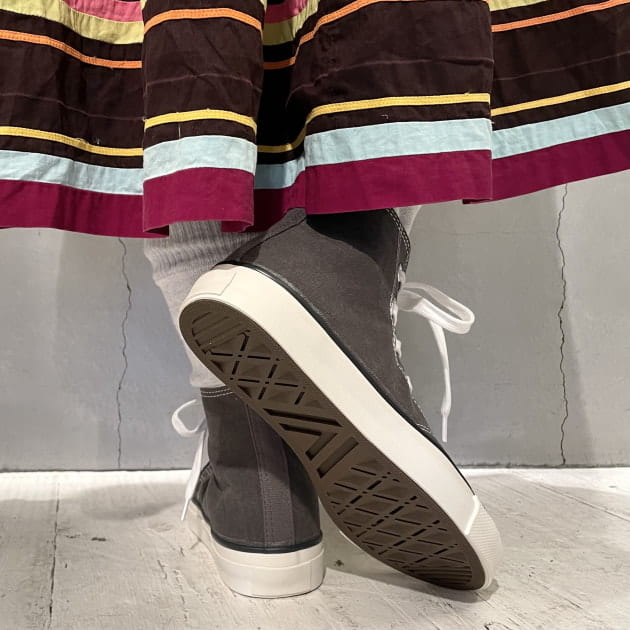 アッパーのキャンバスは、紡績から製織まで帆布「富士金梅」を使用。