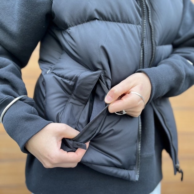 外ポケットの内側はフリースのような素材になっており、暖か◎