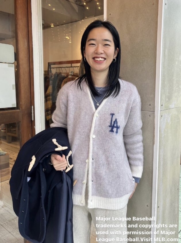 肩掛けしたカーディガンでよりこなれた雰囲気に〜♪