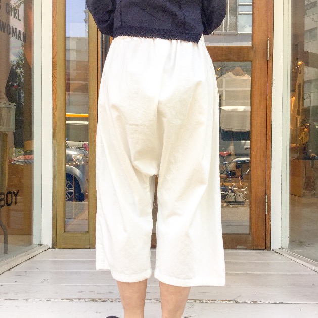 パンツにも裾にチャイナ釦のディティールを取り入れています。