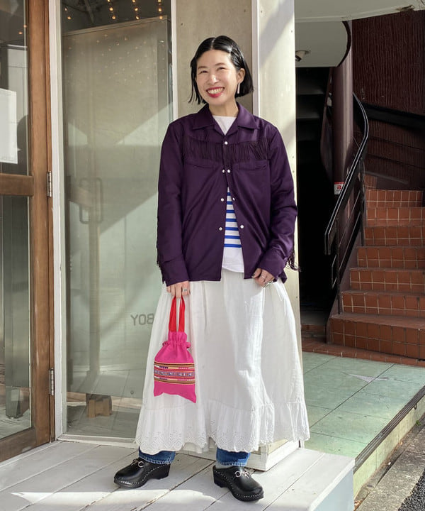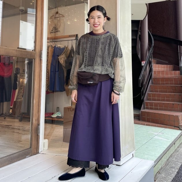 以前のブログには、全身の着用画像が掲載ございませんでしたので、ツドサンに着用してもらいました!