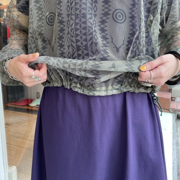 裾のドローコードを絞るとブラウジングが出来てスタイリングがスッキリと纏まります。