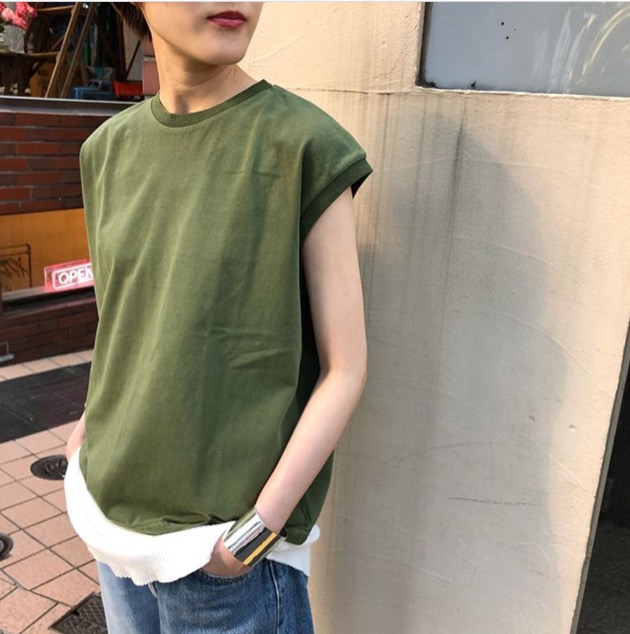 Tシャツにチノパンやデニム合わせて、