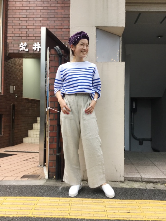 近藤私物のサボと、ワンコのプリントのブラックといいアクセントになっています!