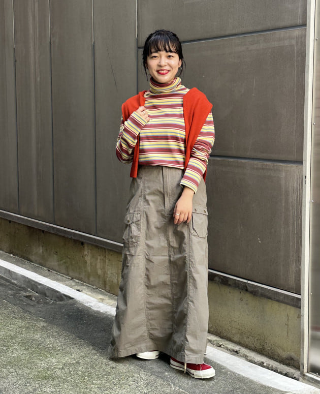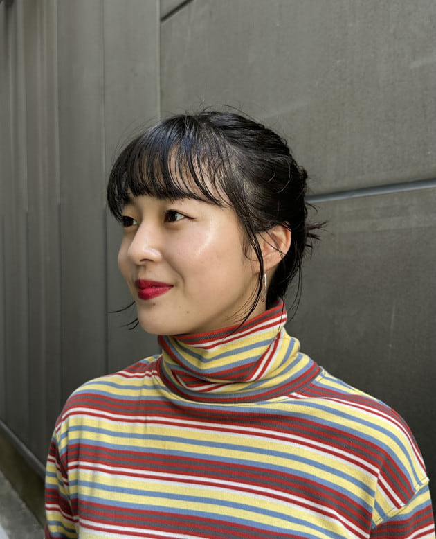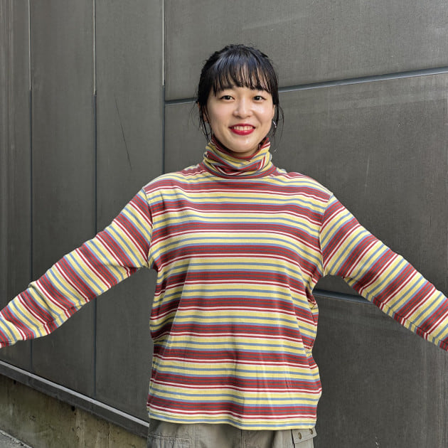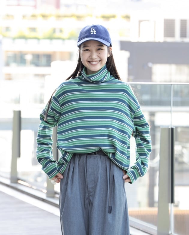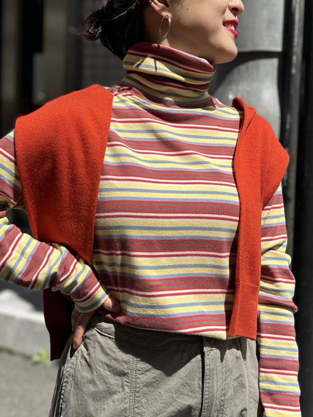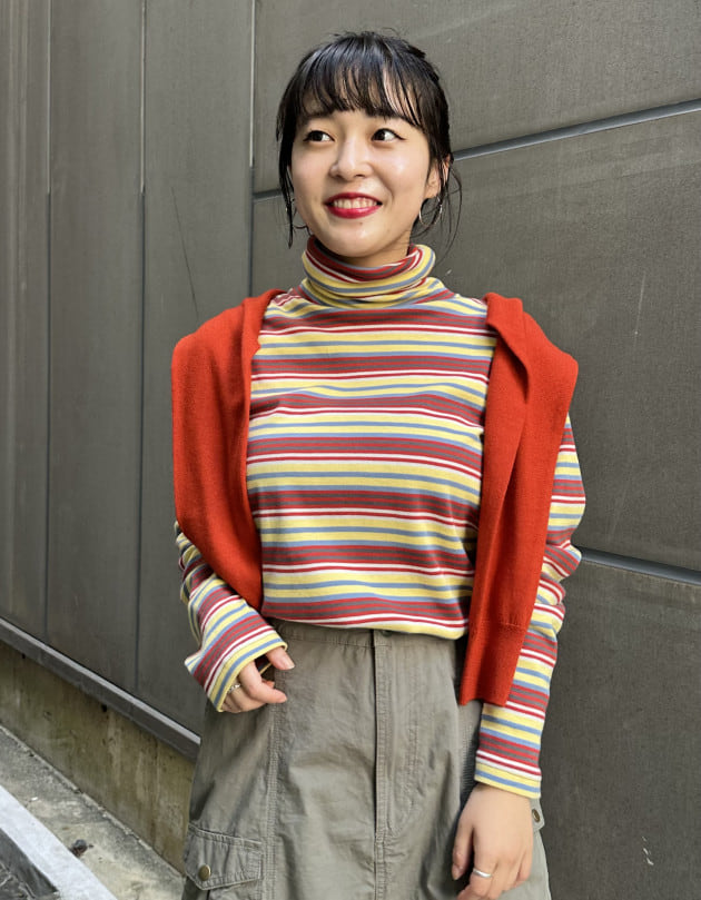 ボーダーから色を拾ってカーディガンとリンクさせましたよ♪