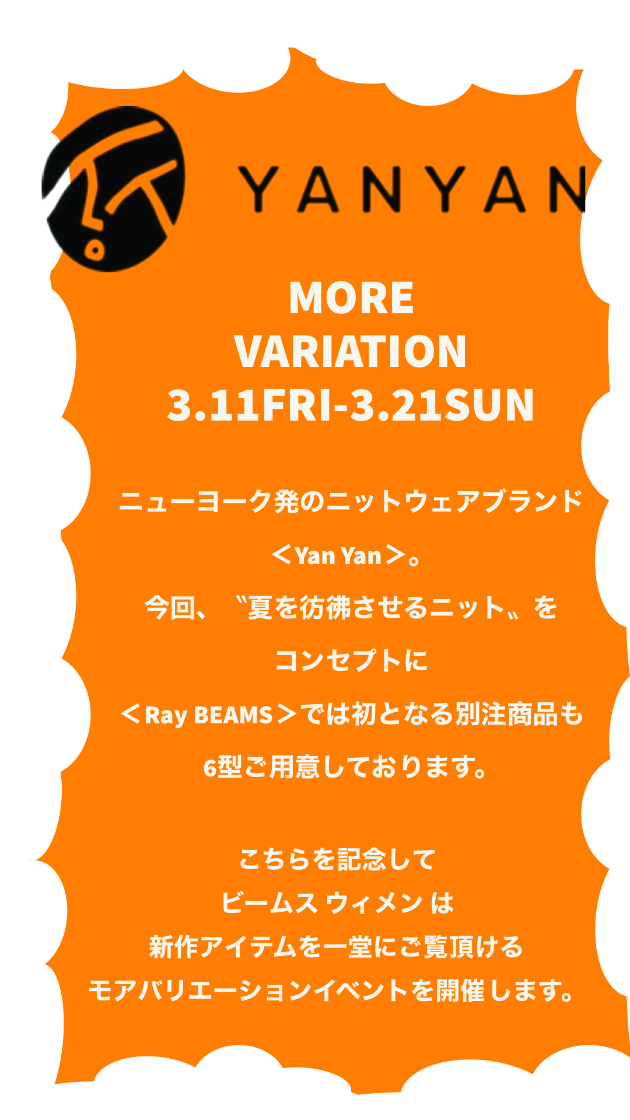 〈Ray BEAMS〉では初となる〈YanYan〉別注アイテム発売を記念し、