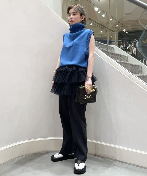 ウエストにチュールスカートが付いた甘辛アイテム。