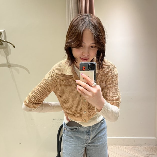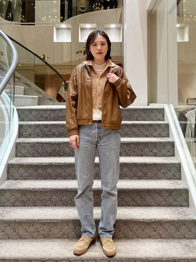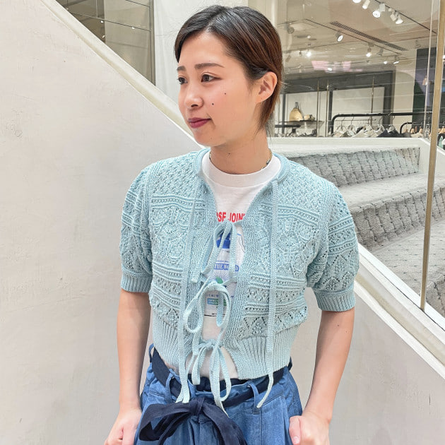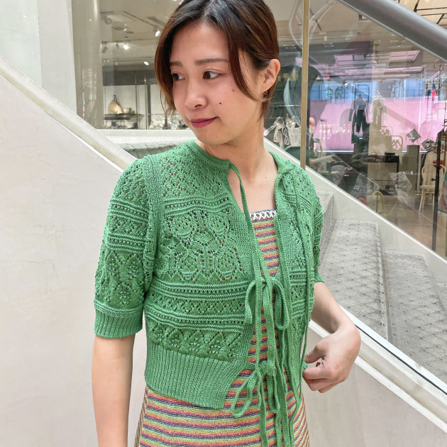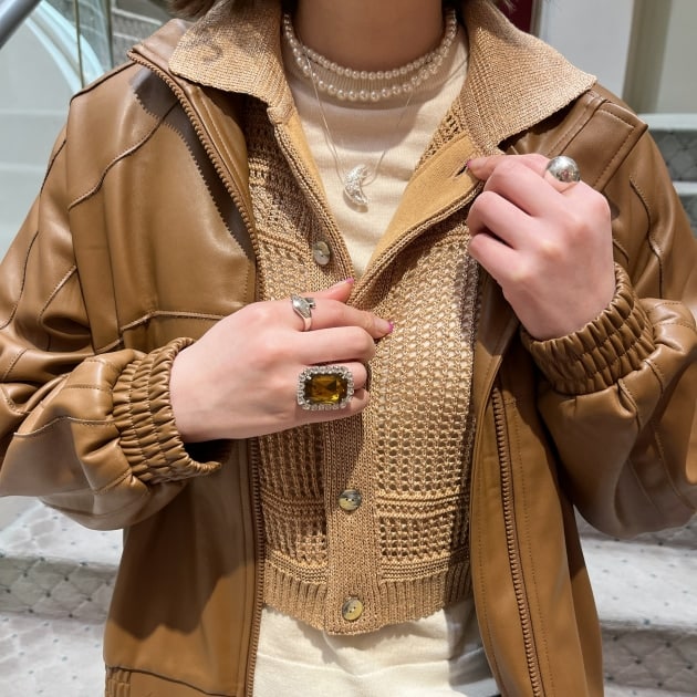 シンプルなトップスにはぜひこちらを重ね着してみては。