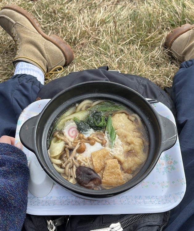 頂上で食べるアツアツの鍋焼きうどんが絶品。