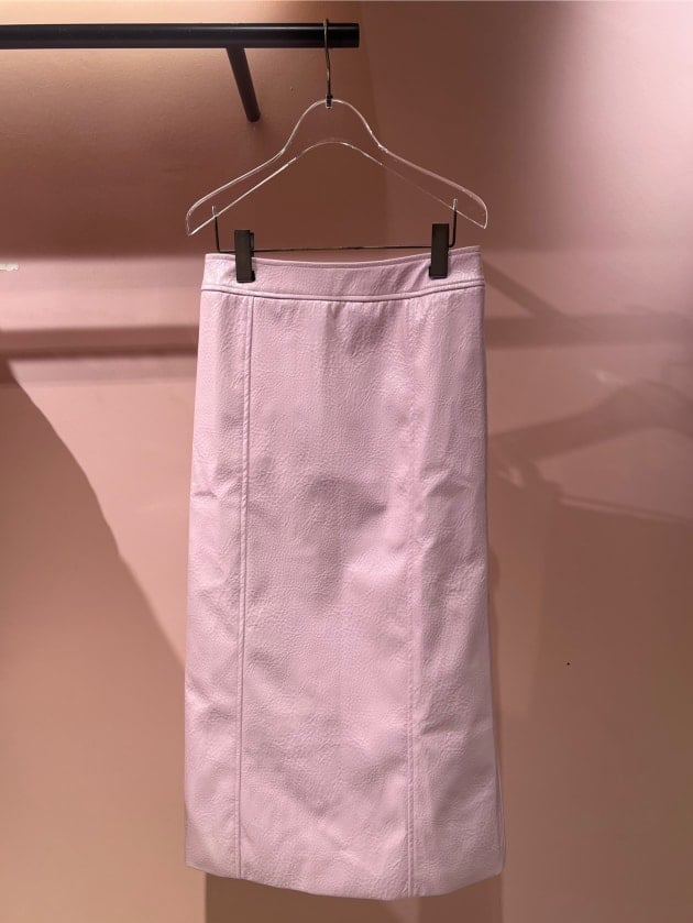 程良い艶感のある合皮のミディスカート