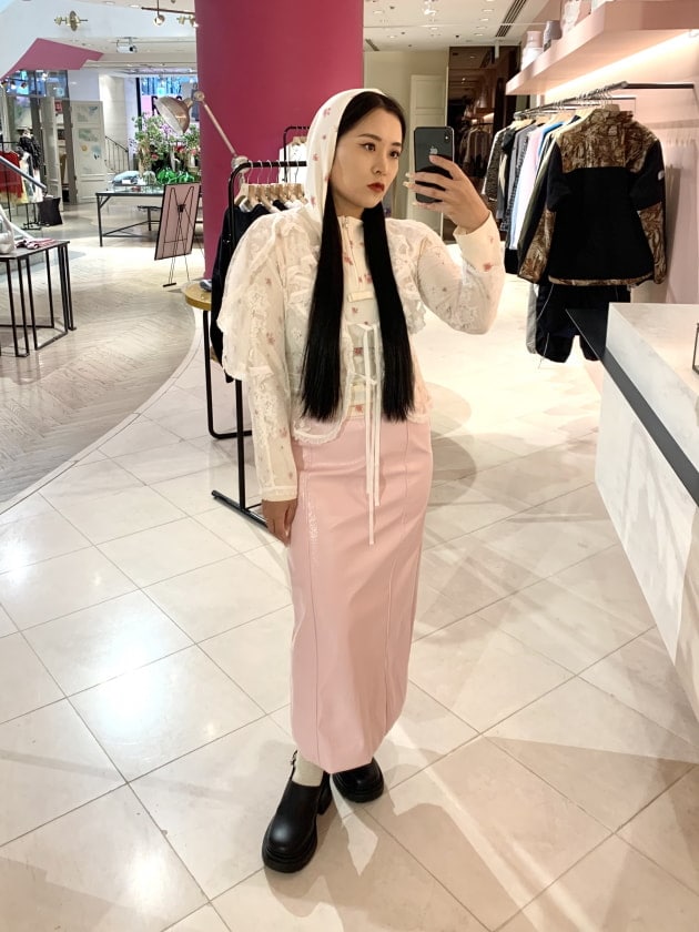 <DREAM sister jane> Rose-Spun PU Midi Skirt