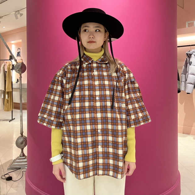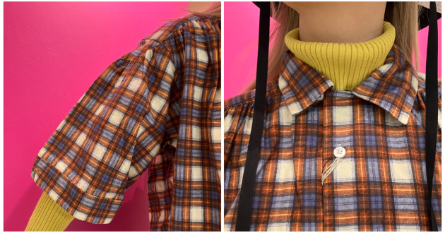 お袖にボリュームのあるチェックのシャツ