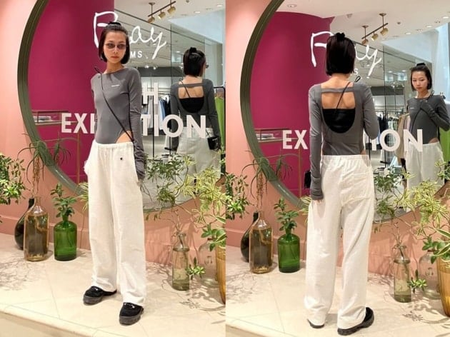 一番左のワイドデニム、着てみるとこんな感じ↓