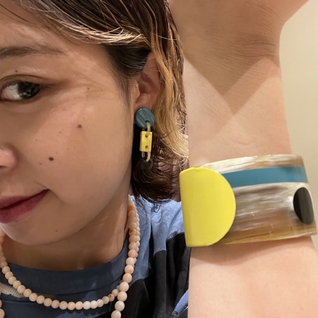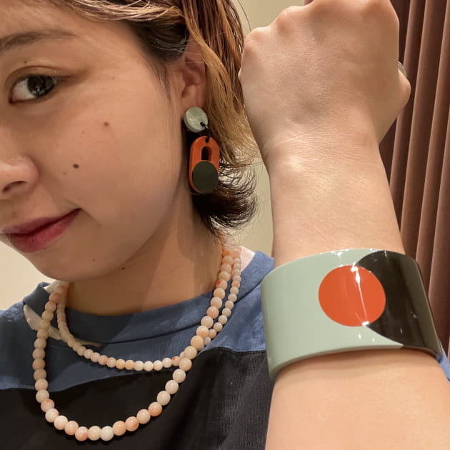 トップスを一枚で着る日は、アクセサリーをいっぱいつけるのが好きです!