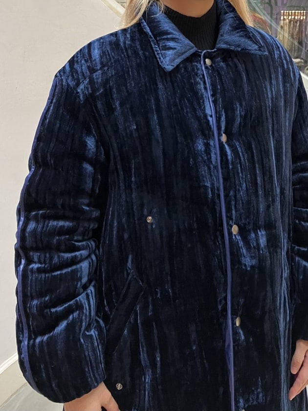 ゴメスさんはベストのスタイリング。〈YOHEI OHNO〉のラメブルーと〈ACNE STUDIOS〉デニムをリンクさせ、差し色のソックス‼︎色使い勉強になります‼︎
