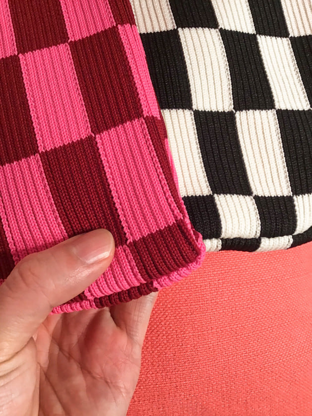 今が気分なチェッカー柄と肉厚なニットリブが特徴のこちら。