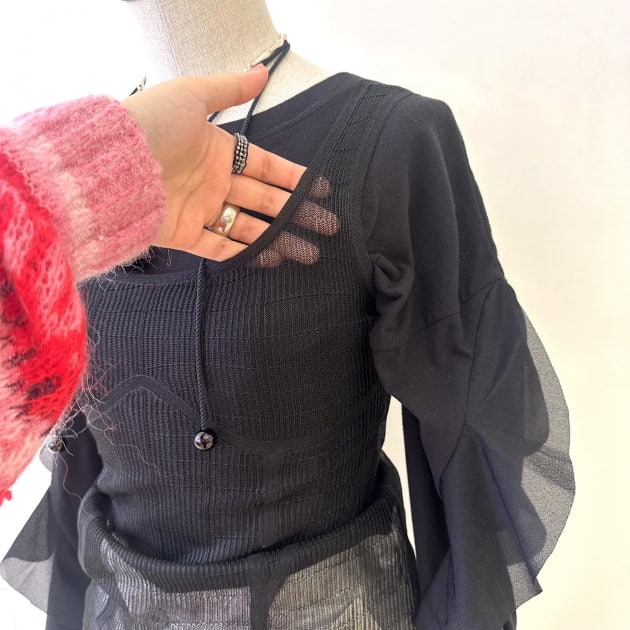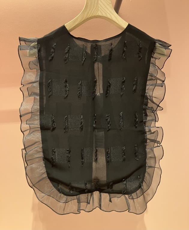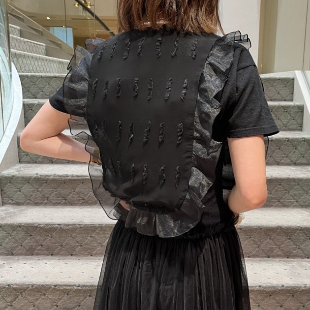 BLACKはネックと裾にフリル、