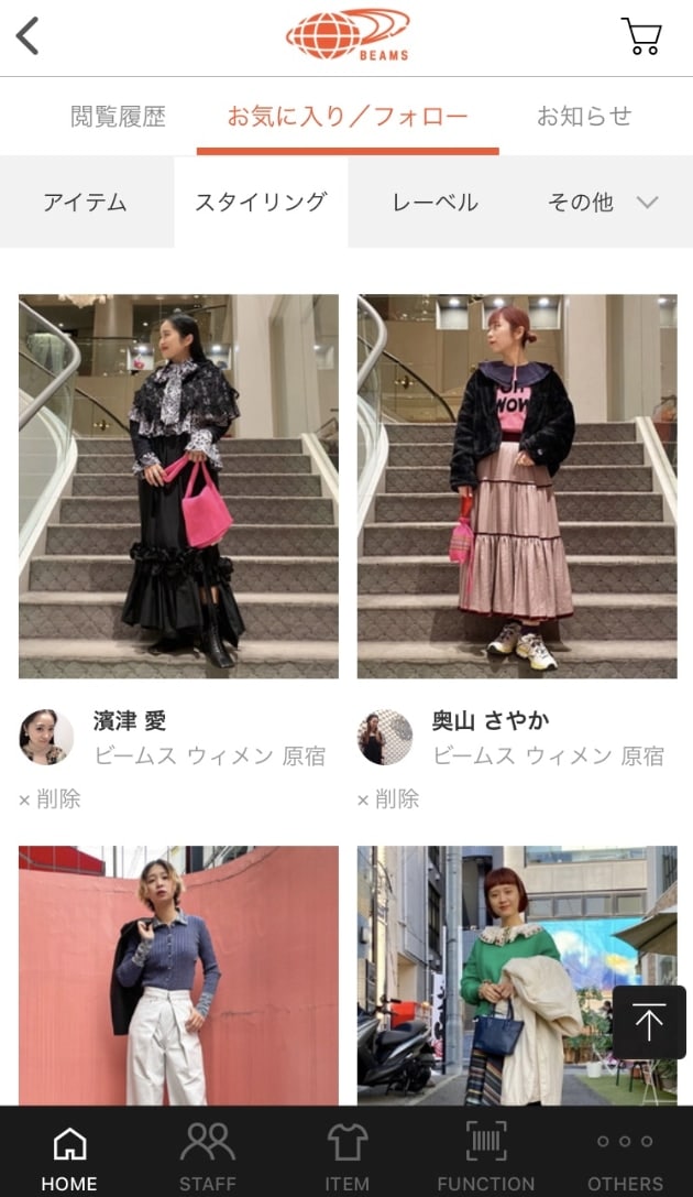【STAFF】の項目でスタイリングの閲覧が可能です。