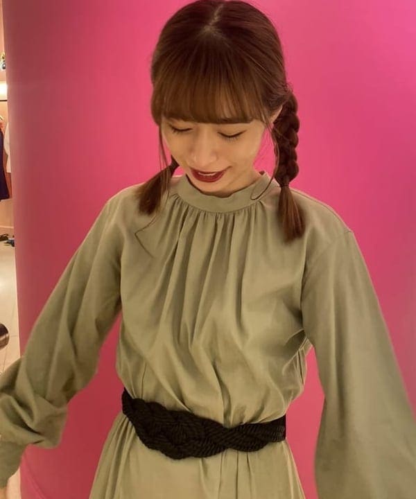 続いては、ジョーゼット生地を使用したガーリーなワンピースとシースルートップスを合わせたスタイリング。